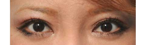 上述介绍的例子。埋线法手术后,看上去很困的大的双眼皮,如果化了眼妆的话,眼睛被看上去很大。 双眼皮切开实施了眼睑下垂修正手术以后。眼睛变得很有神了。 |